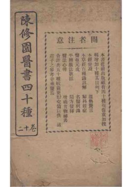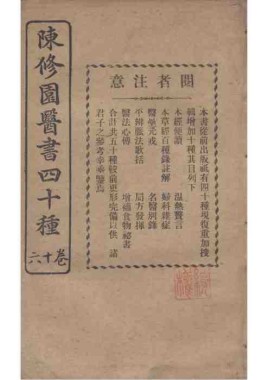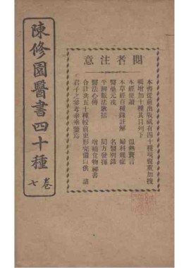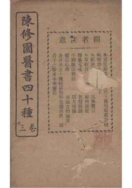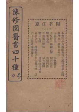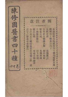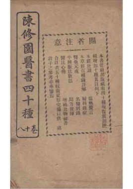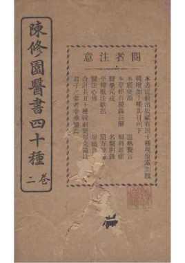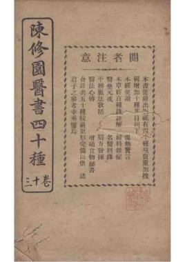 题名: 陈修园医书四十种二卷医... 责任者: 商务印书馆 年代: 清 光绪31年(1905) 分类: 子部 版本: 铅印本
