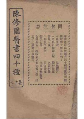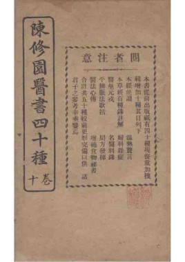 题名: 陈修园医书四十种卷十四... 责任者: 商务印书馆 年代: 清 光绪31年(1905) 分类: 子部 版本: 铅印本 -